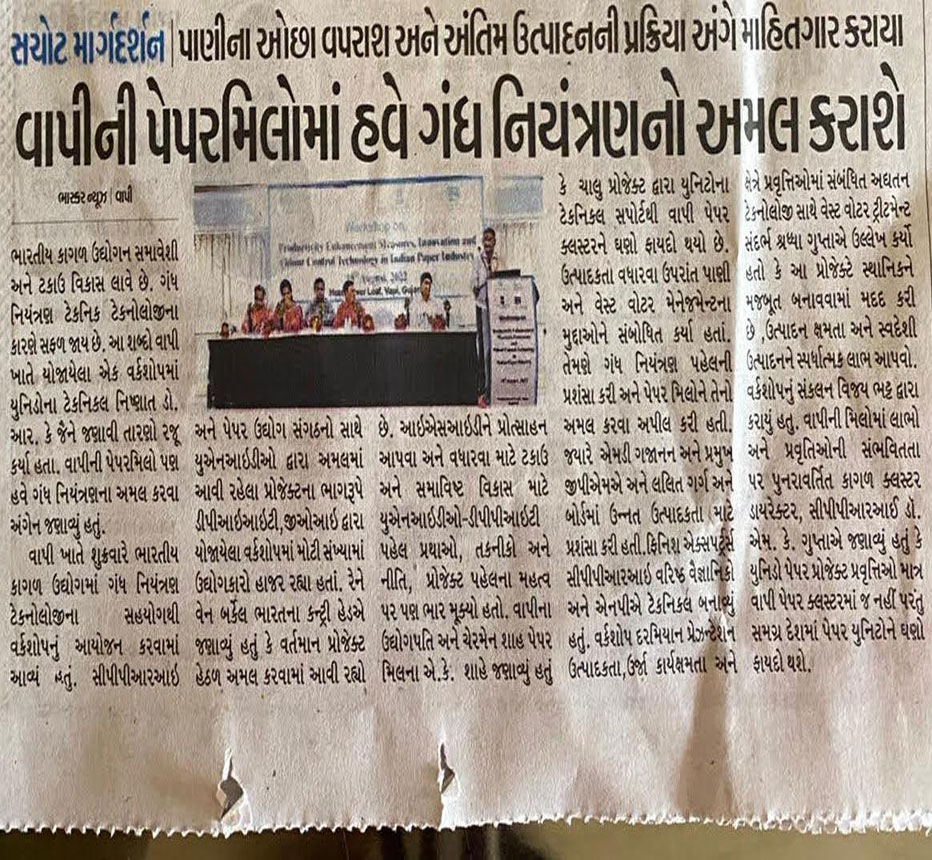 Dr. M. K. Gupta, Director, CPPRI emphasised that activities carried out as part of the UNIDO paper project would greatly benefit not only the paper units in the Vapi paper cluster but across the country. He also said that agro-waste utilization has huge potential as raw material for pulp making.