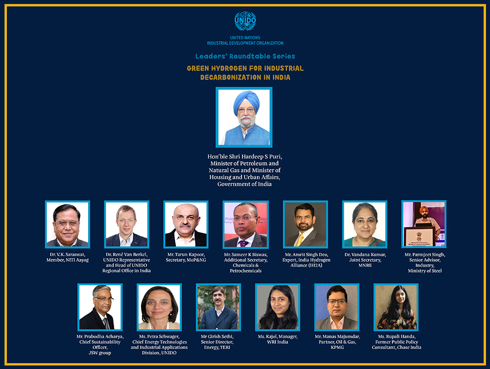 23 November 2021: Touted as the cleanest form of fuel, Green Hydrogen can contribute to a clean, carbon-neutral industry. As of today, all of the hydrogen consumed in India comes from fossil fuels. To explore ways to transform this 'energy matrix,' and deliberate on the opportunities and challenges for manufacturing, supplying and using green hydrogen as an industrial feedstock and fuel in India, a roundtable was organized by the Facility for International Cooperation on Inclusive and Sustainable Industrial Development (FIC-ISID) on 23 November 2021. The Roundtable brought together national and international experts in the sector.